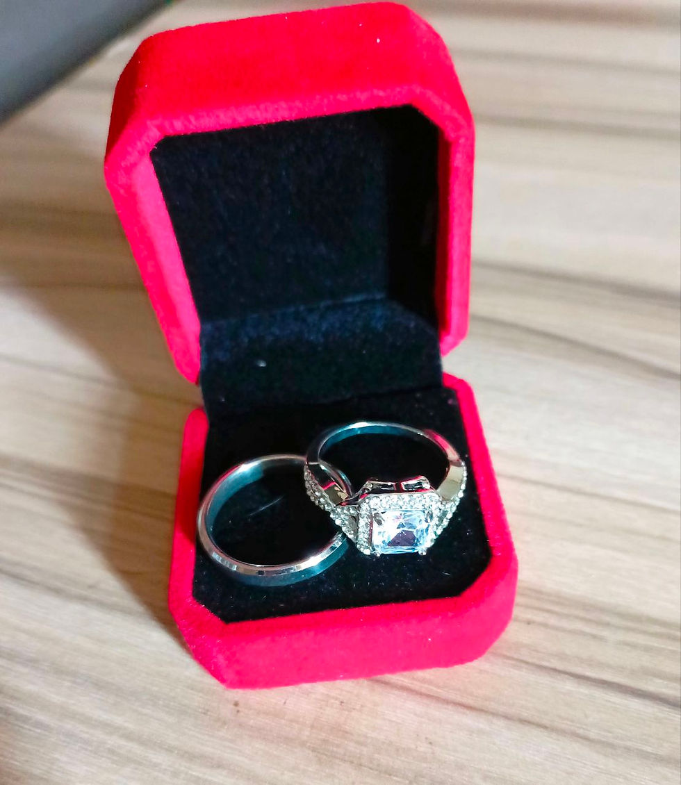 3-Piece Silver Diamond Wedding Ring Set In Box